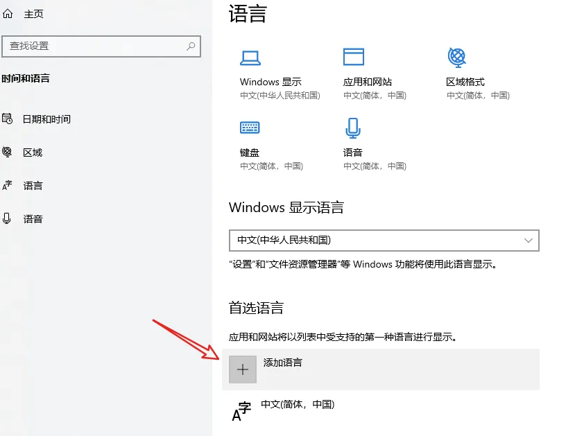 2. 在所有输入法框中,单击语言列表下方的**加号+**符号
